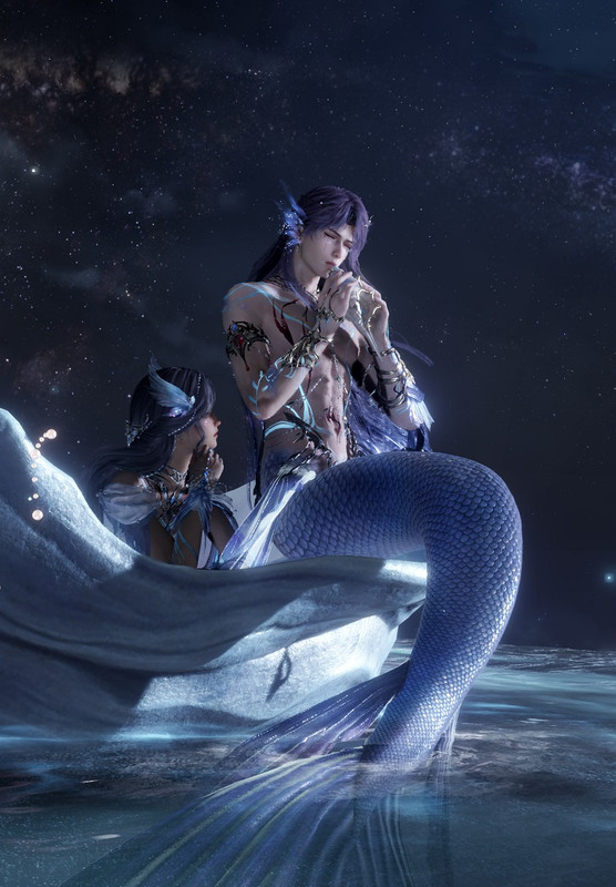 (I still haven't bought the bride outfit actually. Between the two the blue one is the one I prefer, but I'm still debating whether to buy it or not. Part of it is because, no offense to this outfit which is gorgeous and extremely detailed, my own personal taste is always in the opposite direction of bubbly princess hyperfeminine pop - which is MC's vibe 98% of the time - so if I want to see a mermaid-adjacent outfit in glint I guess I'd buy God of Tides instead. Then there's the fact that if I buy an outfit for a companion I do have I can see it in battles, so I'm debating a lot whether I want Abysswalker instead - who I use very often - or if I should wait because down the line we'll have Sylus 3rd myth and Abysm Sovereign rerun and I might just lose my mind then and need all the purple diamonds I can store)