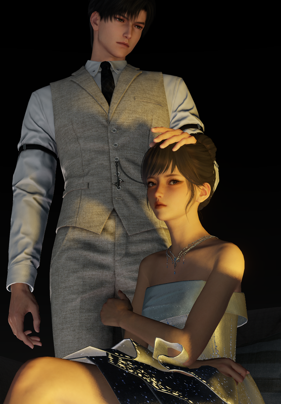 I was testing a few poses with Zayne since I never use him, and I swear I don't recognize the girl in the third photo lol I don't know her.