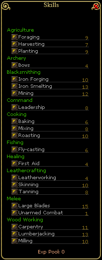 - Always carry: Skinning Knife, Training Whip, Foraging Stick